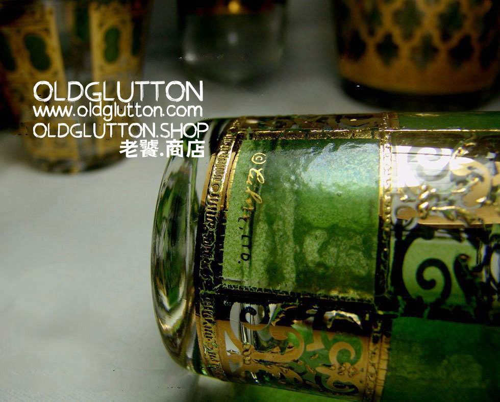 大:D:14.6*H:12cm W:824g,4件大杯:D:9*H:8.5cm w:220g/件,带嘴壶:D:8*H:15.5cm,w:350g,两件中型:D:7*H:14.1cm,w:270g,4件小杯:D:6.7*7.4cm w:162g,水晶玻璃,贴金,鎏金,彩色。