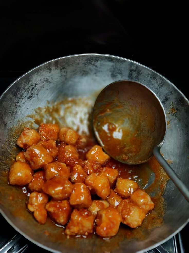 It belongs to the Chinese Cantonese cuisine, is a traditional home cooking in Cantonese cuisine. The main selEction of pork tenderloin, fruit and pineapple as the main ingredients, with tomato sauce, sugar, white vinegar, egg white, starch, salt, pepper, sesame, cooking wine and other spices, after marinating, frying, braising and other techniques. The color is red, sweet and sour, and the fruit is sweet and delicious with pineapple.