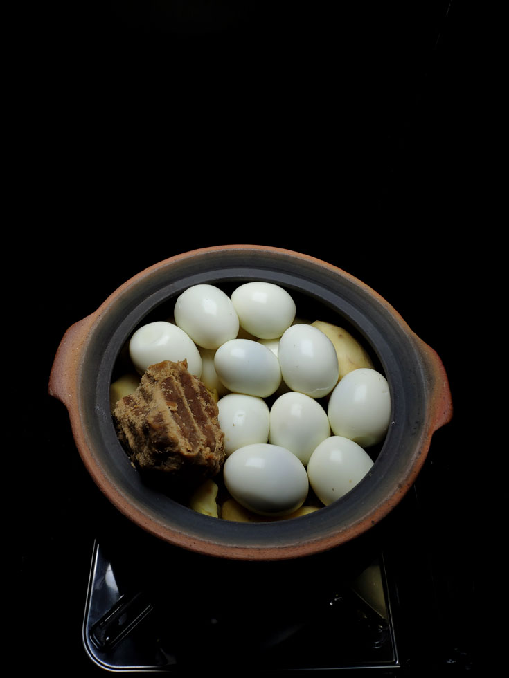 It is made with sweet vinegar and sugar without water. First, people should clean the pig’s knuckles and fry them with ginger water. Then, they cook them in a casserole (an Chinese ancient handmade utensil) and add eggs into it, done with good taste.