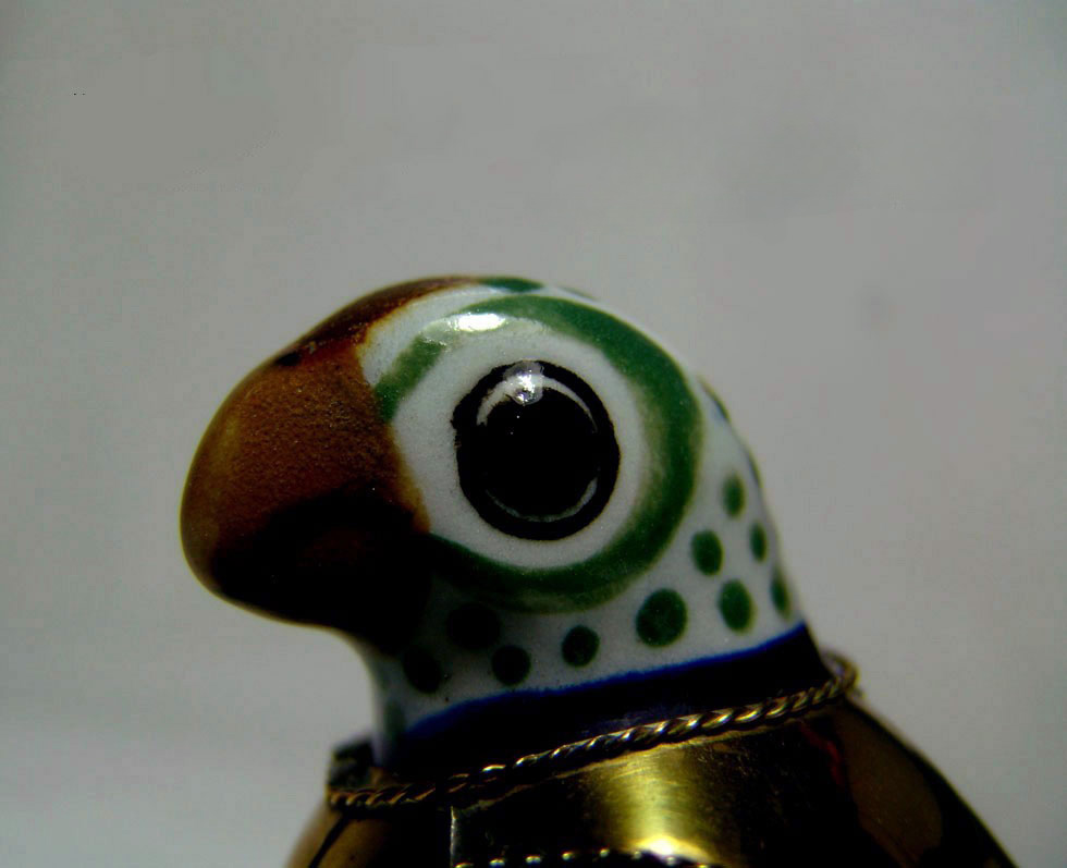 Porcelain, brass-jacketed, Japanese parrot, exquisite, hand-made.6*12*H:8.5cm,W:165g,瓷器,身披黄铜羽甲,日本鹦鹉,极精美,手制。
