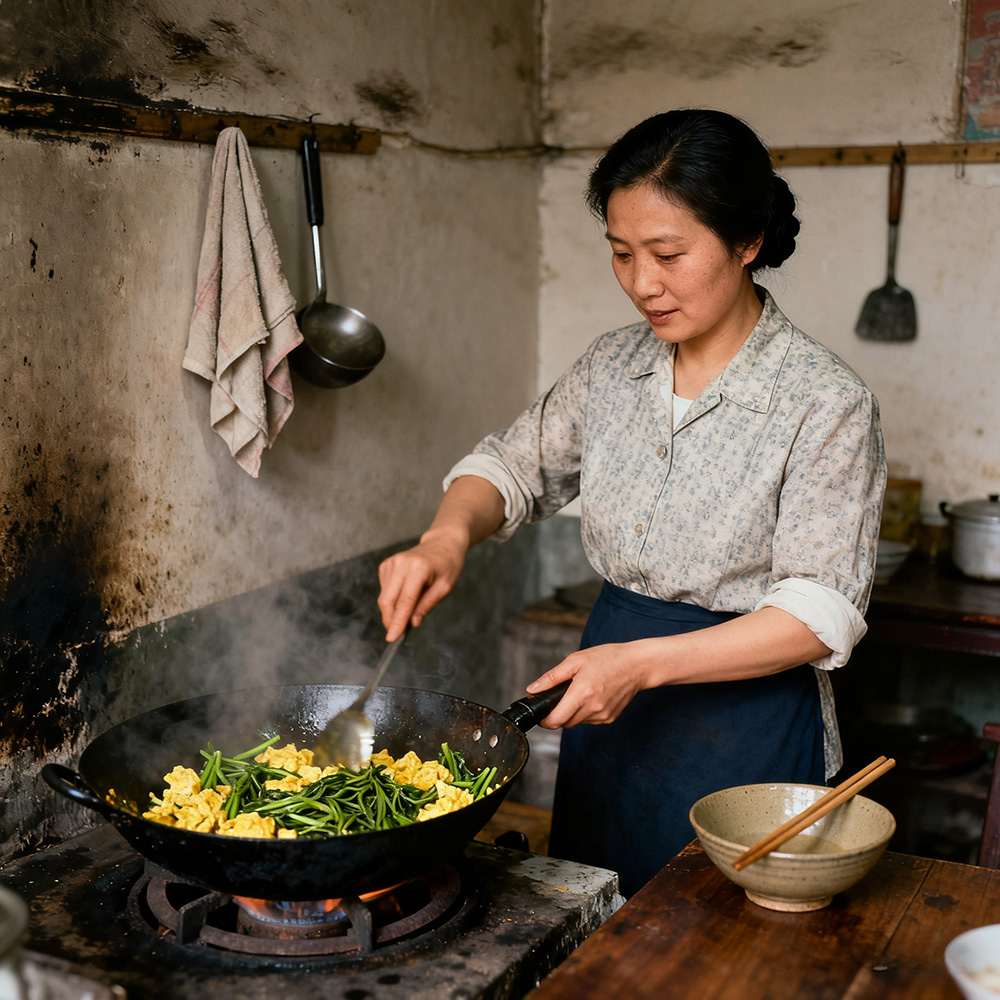 老饕聊中国重庆家常菜椿芽炒鹅蛋Old Glutton talk about Chinese Chongqing home dish-Fried goose egg with Chinese toon sprouts